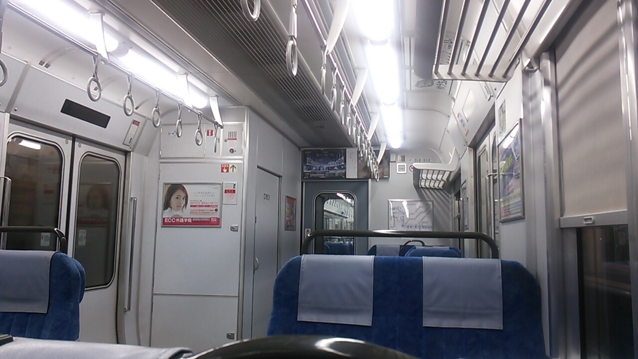 この列車、8両編成での運転で、通常であれば全ての座席が2人掛け転換式クロスシートとなっている6両編成の車両と基本的には2人掛け転換式クロスシート、一部4人掛けのボックスシートの2両編成の車両が連結されての運転ですが、この日の場合、基本的には2人掛け転換式クロスシートの車両が使用されていましたが、前から5・6両目については4人掛けボックスシートと2人掛けロングシートとなっている2両編成の車両が使用されていました。