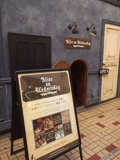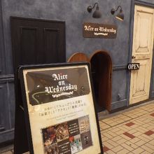ルイス・キャロルの「不思議の国のアリス」をモチーフにしている。「不思議の国」の演出の為か、店の入り口も屈んで入らなければならない程低い(非常時にはどうするのか、とちょっと心配になる)。