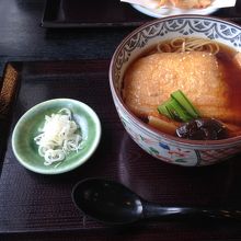 名物はごぼうや胡麻を練り込んだうどんで、細いので見た目はお蕎麦のようです。