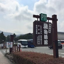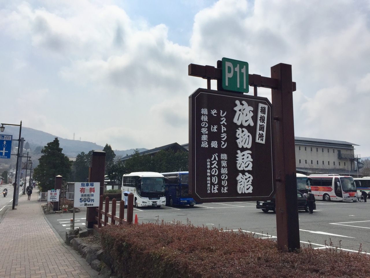 店舗前の駐車場は「箱根関所」「恩賜公園」「遊覧船乗船」等の観光に便利なロケーション。その帰りにこちらの土産物店で買い物をしてもらおうという、ツアーバスのルートになっているようです。