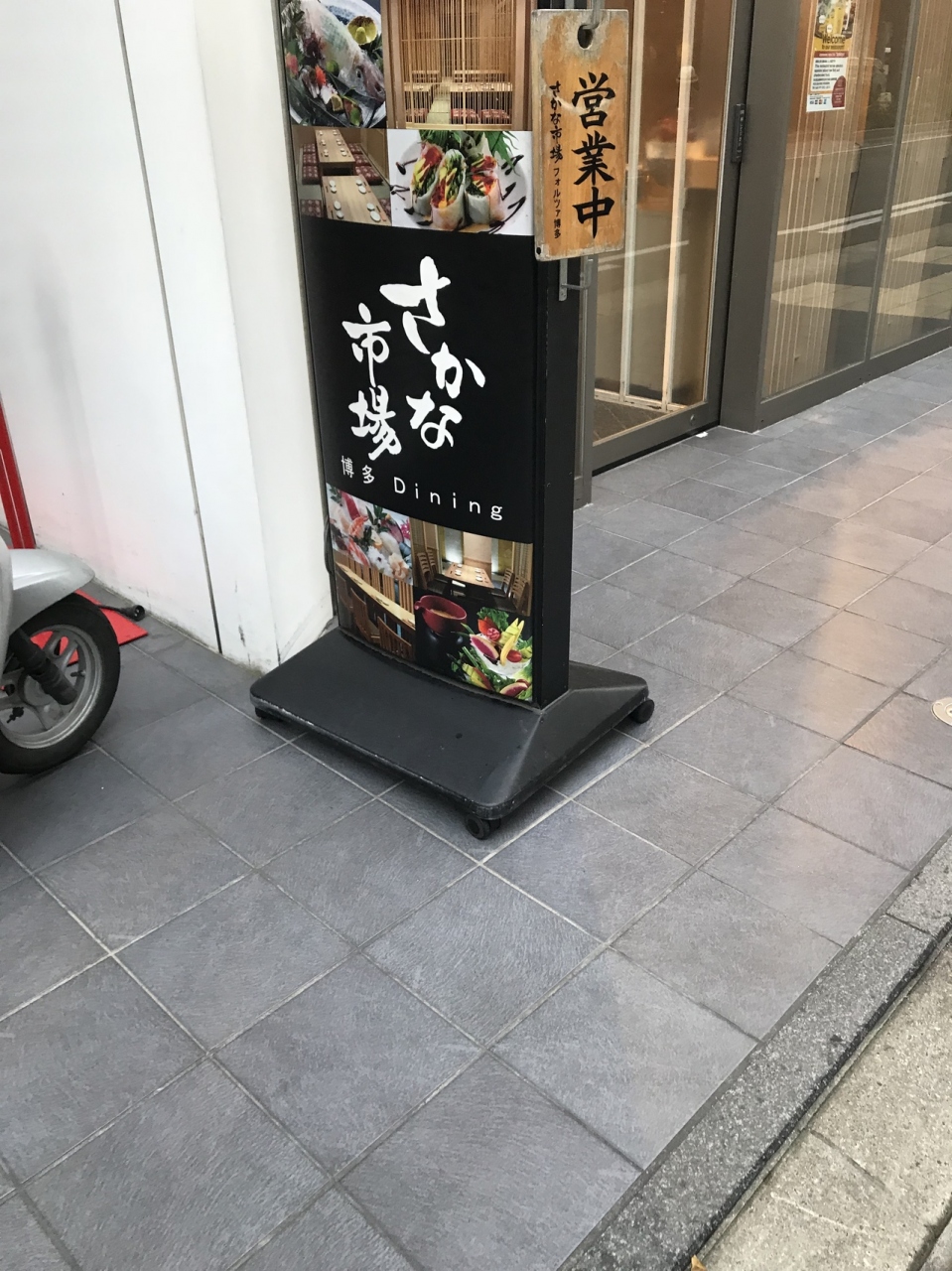 博多駅筑紫口近くにあるさかな市場です。九州はやっぱり魚介類がめちゃくちゃ美味しいです。このさかな市場はチェーン店ですが、かなり美味しいです。運良く、イカ刺しを食べることができました。歯ごたえが最高でした。