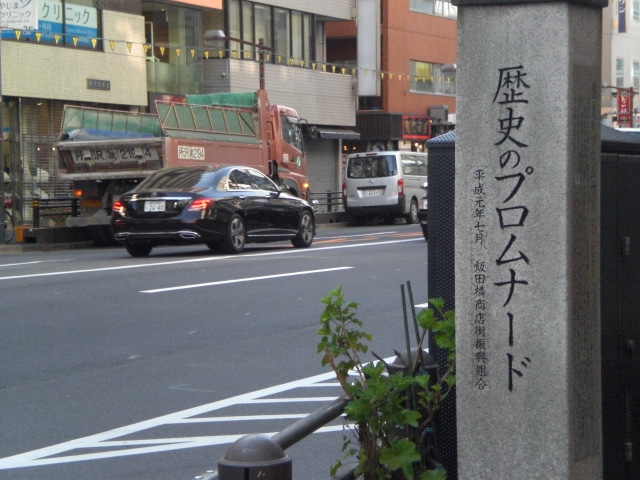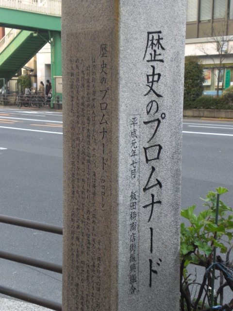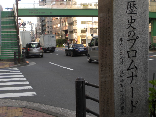歴史のプロムナードとしての石碑は、目白通りの飯田橋第2陸橋の傍にあります。