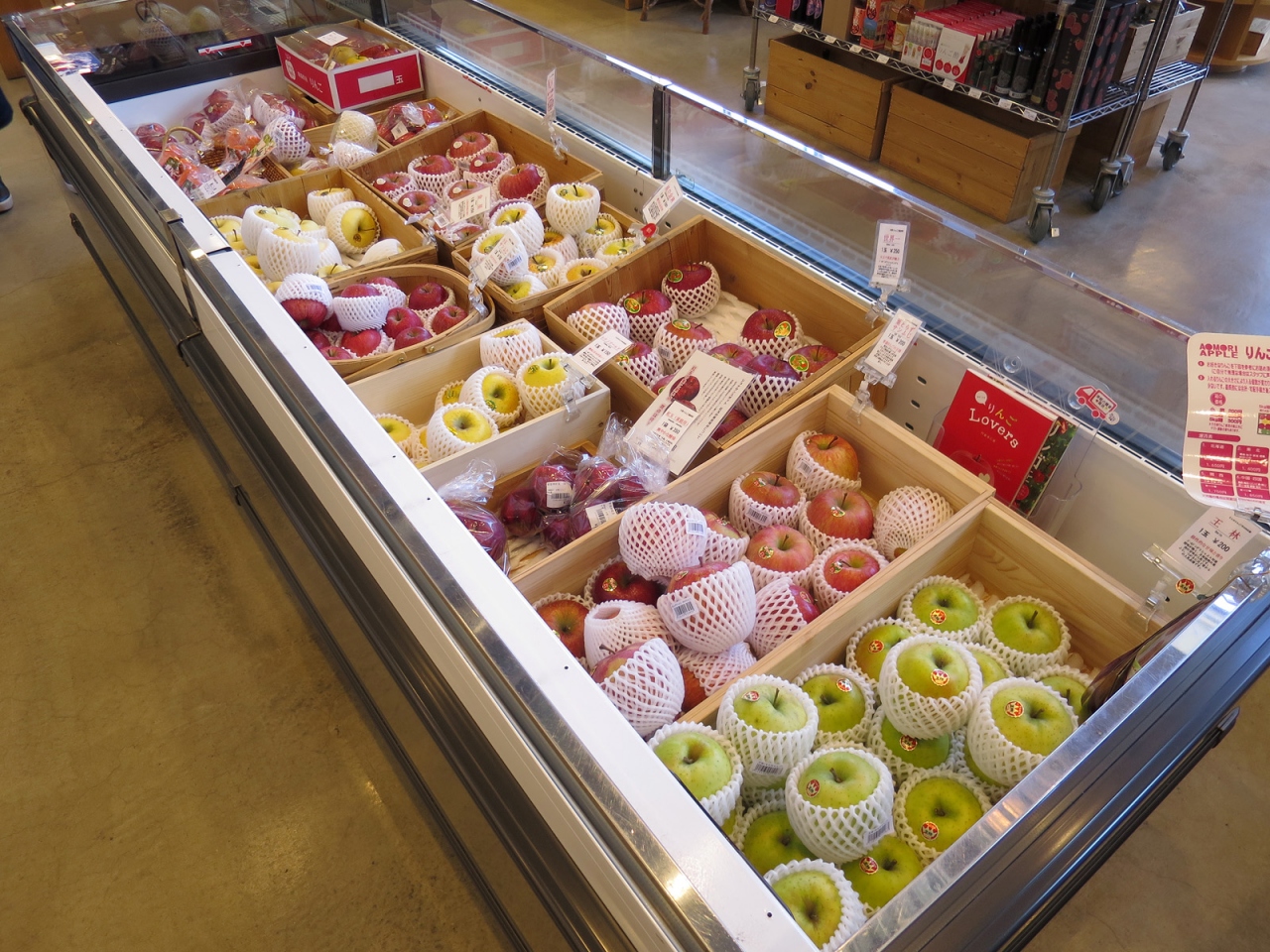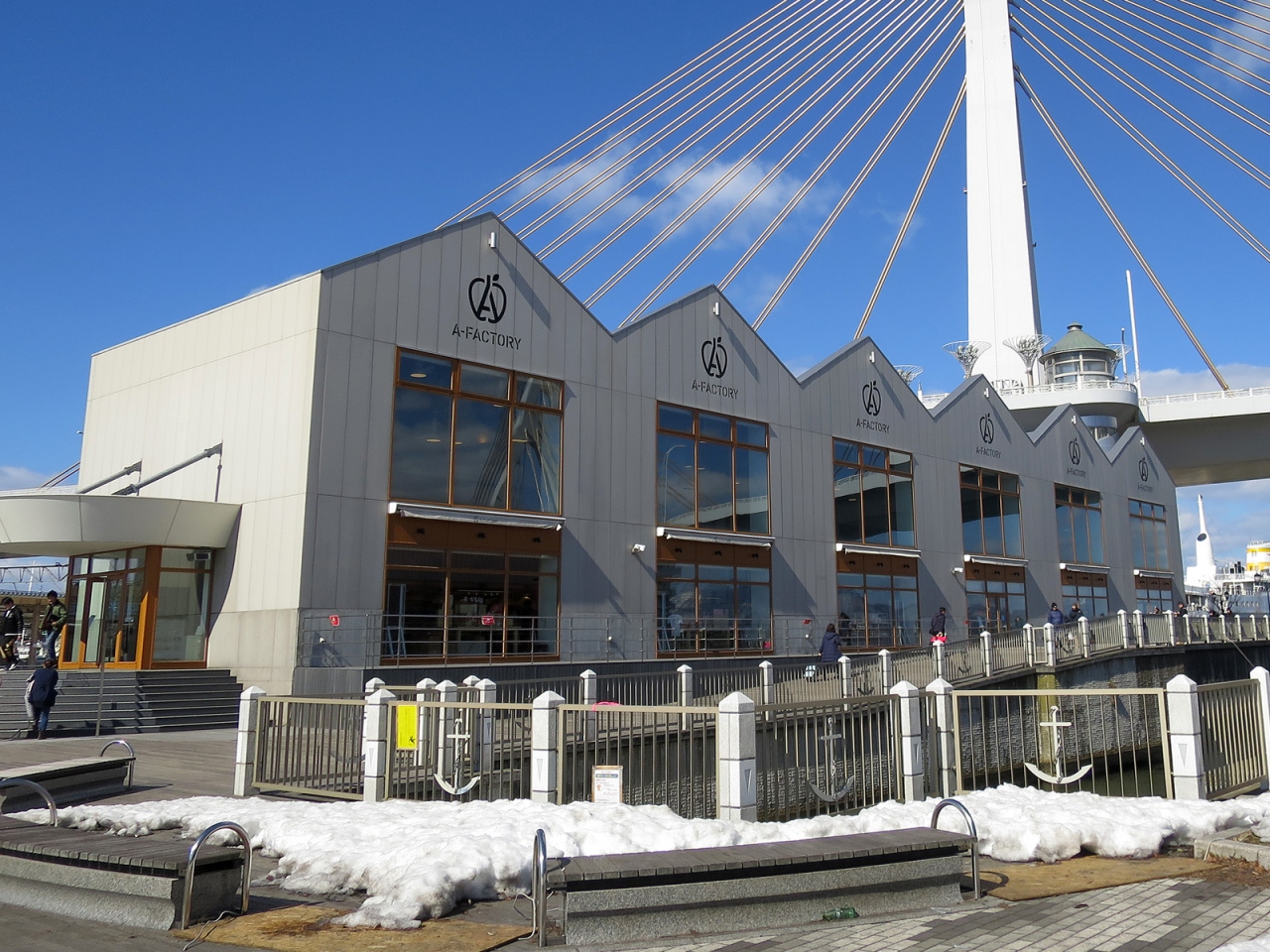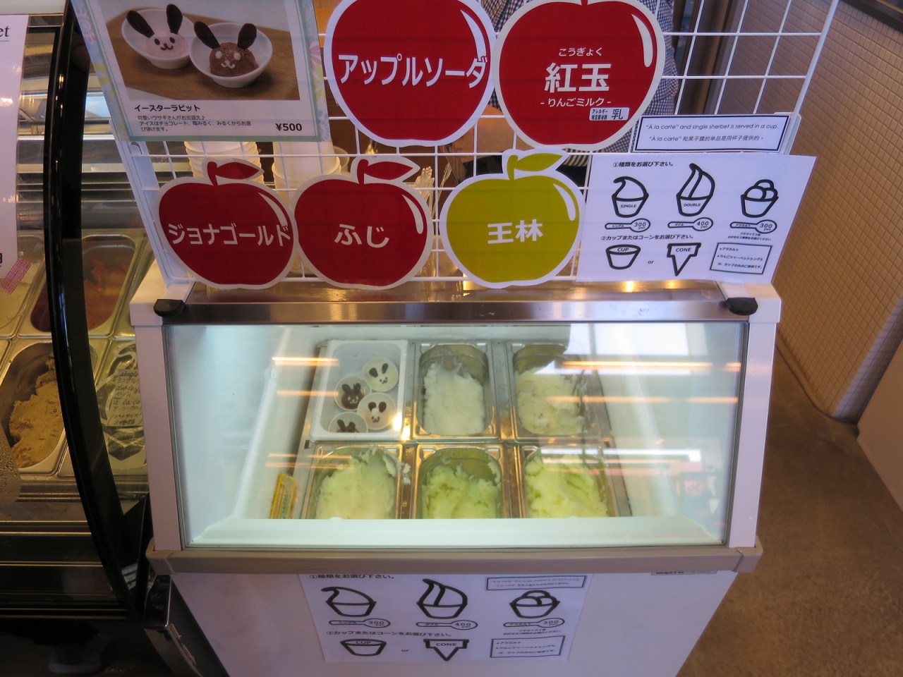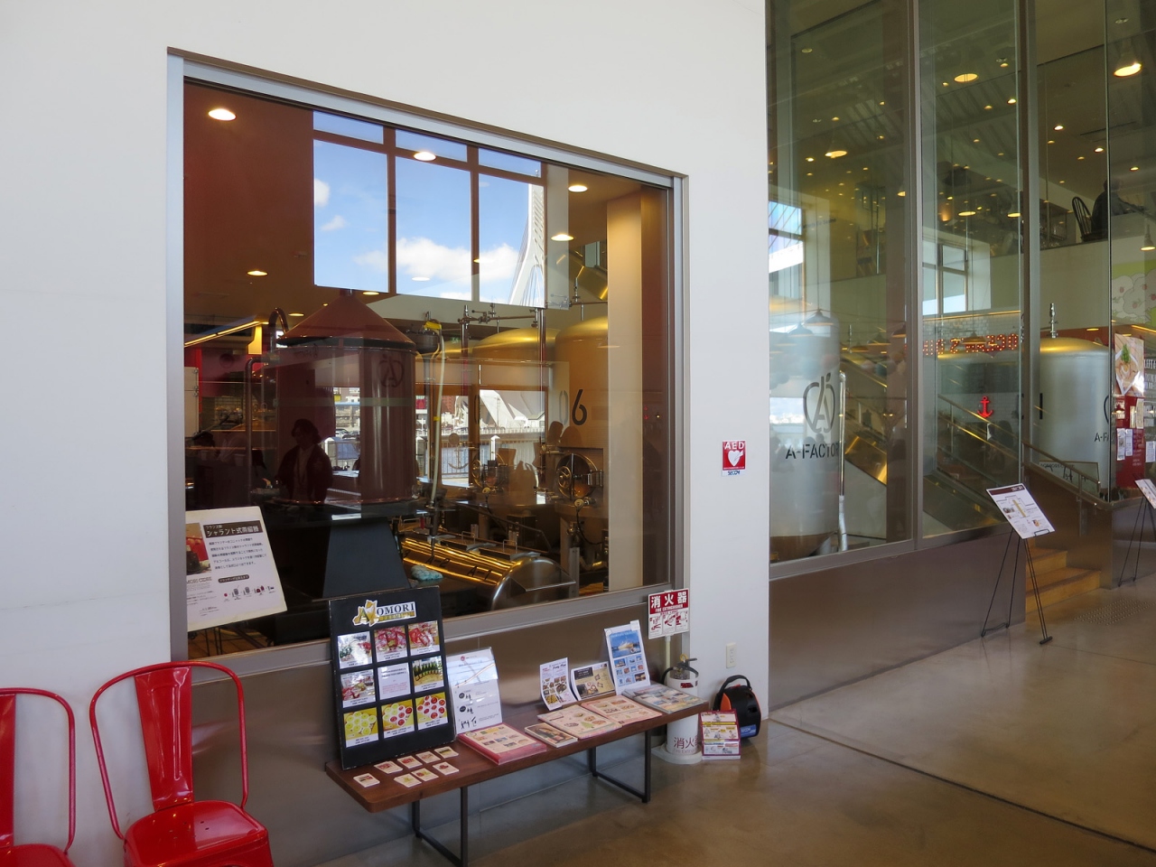 「青函連絡船メモリアルシップ八甲田丸」が係留されている埠頭の手前側、「青森ベイブリッジの足元」、「ねぶたの家ワラッセ」の正面という、再開発地区にあるシュッピングスポットです。かつては青函連絡船で運ばれた物を保存する倉庫や加工する工場が多く立地していたはず。こちらの建物が三角屋根を連ねた形なのも、そうした工場を模したものであることはファクトリーというネーミングからも分かります。大きな窓に囲まれた館内は工場らしく飾り気のない吹き抜けの1フロアで、お洒落な物品販売エリアとチープなカフェエリア、そしてシードルを製造している小さな工場からなっています。その工場で作られたシードルは2階のレストランで味わえます。物品販売エリアに並べられている商品はセンスの良い商品ばかりでしたし、館内にあったジェラート屋さんには複数のりんごのジェラートがあったりと、地元の人をも引き付ける青森の最先端スポットだと感じました。