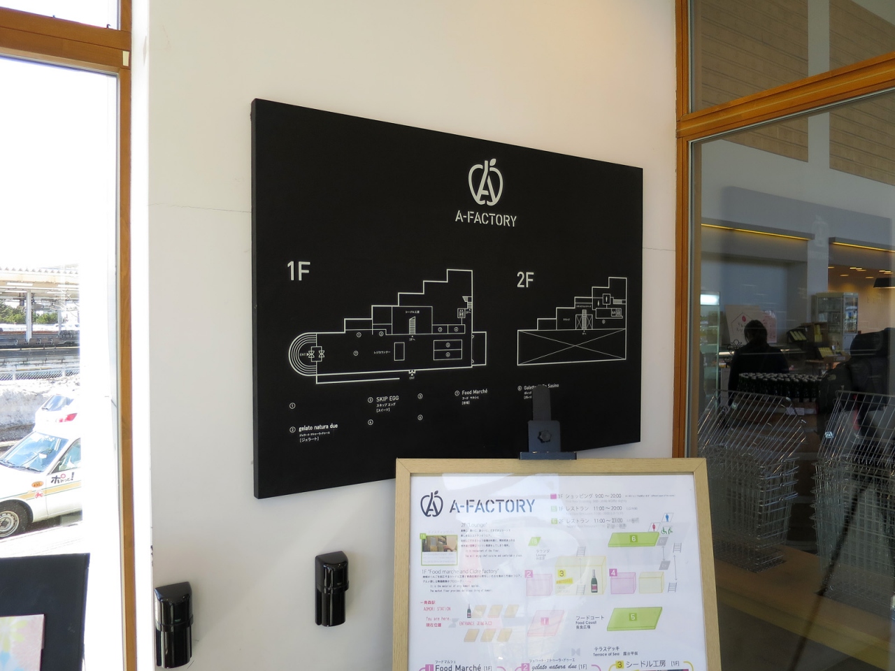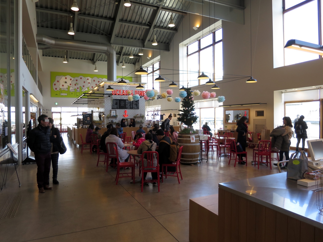 - 工場を模した吹き抜けの館内には、シンプルさがお洒落な物品販売エリア、ちょっとチープなカフェエリア、2階にはシードルレストランと楽しかったです