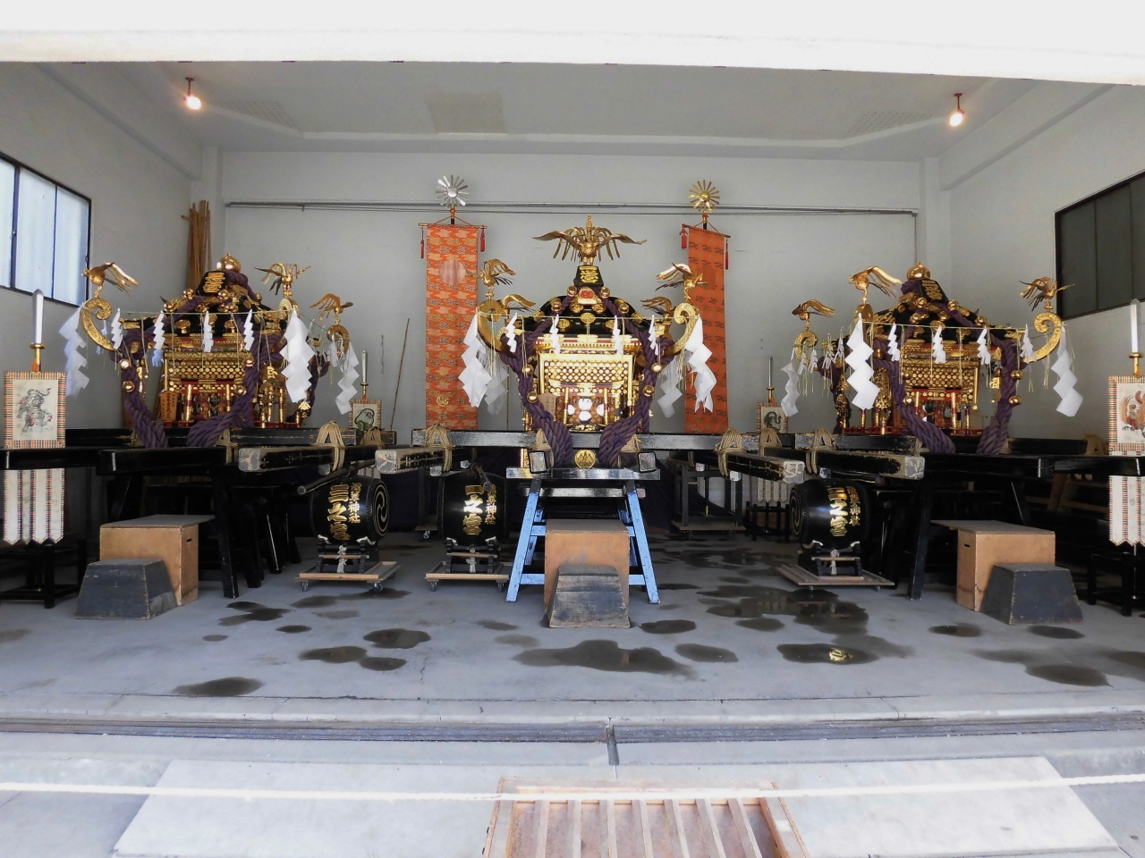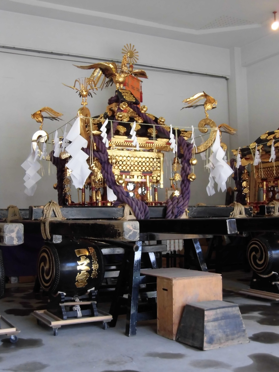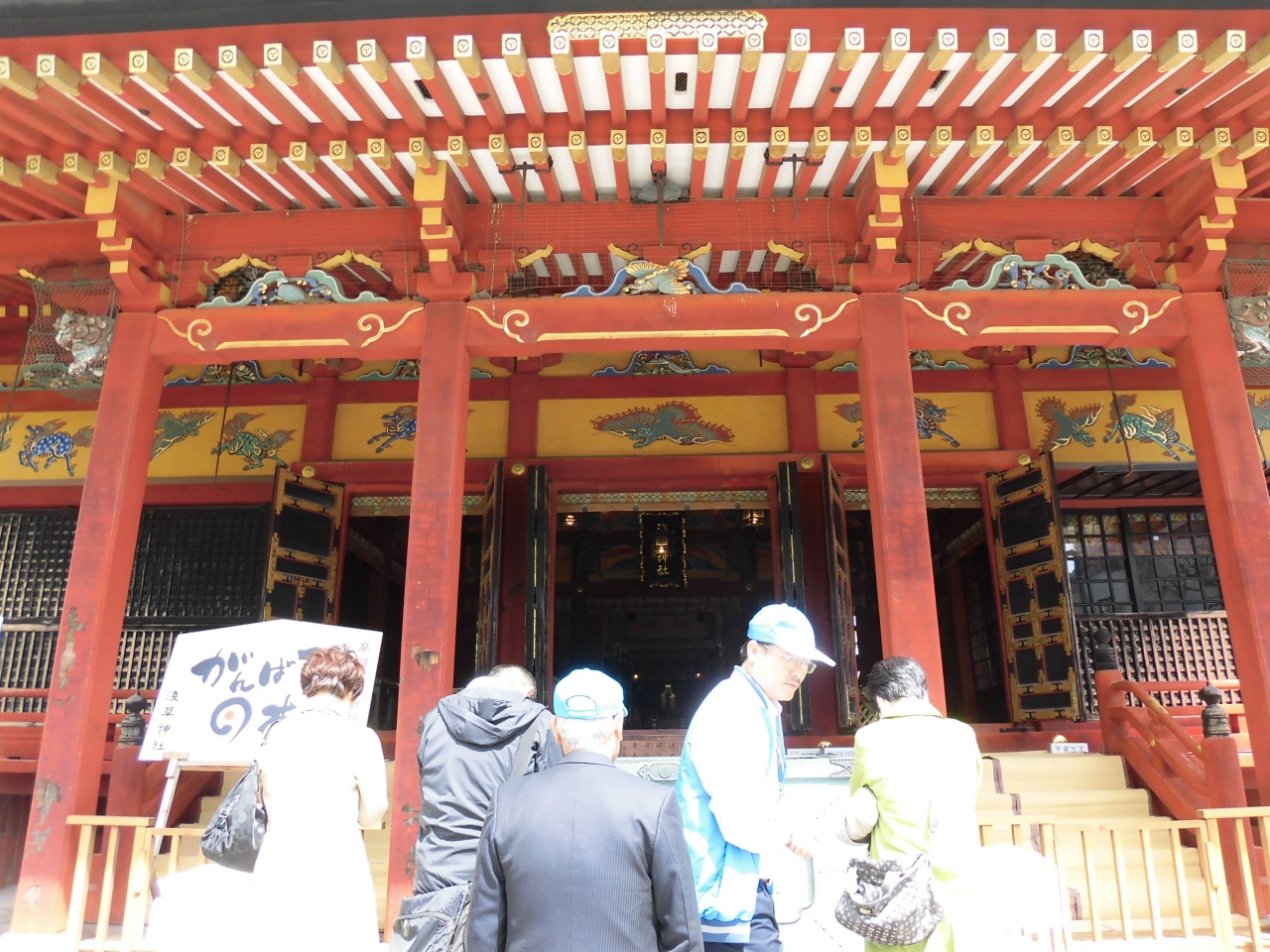 「浅草寺」の創建に関わった3人を、神として祀った事から「三社権現」と称され、今でも三社さまと呼ばれている浅草神社。浅草寺の人混みの多さから見れば寂しい限りでしたが、今回は三社祭で使用するお神輿を見ることができました。三社祭が近づくこの時期だけ開放されているそうです。