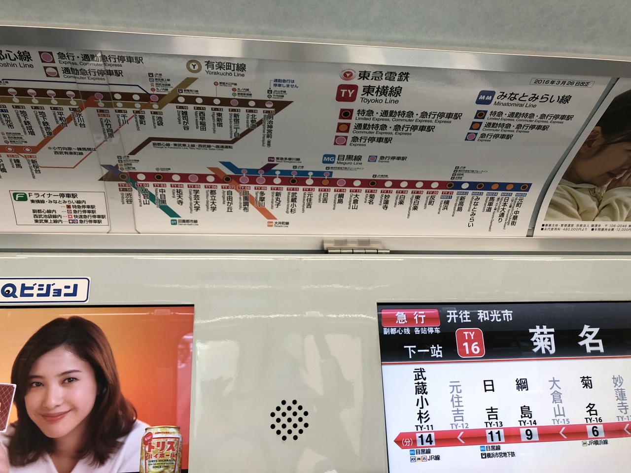 途中の停車駅には新横浜に近い「菊名」や「田園調布」お洒落な「自由ヶ丘&代官山」があります。