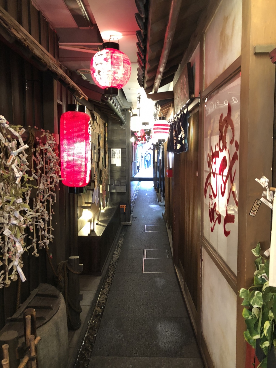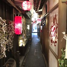 道頓堀の中座くいだおれビルの横にある小路です。注意して見ないと気づかないくらい細い路ですが、両脇に提灯が飾られておりなかなか雰囲気が良かったです。道頓堀の喧騒とは隔離されていて、落ち着いた飲食店が数軒ありました。