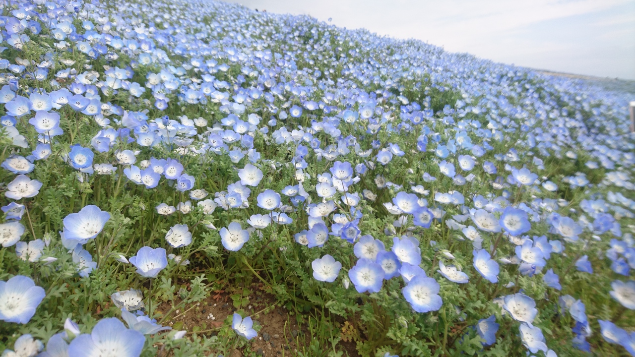 今年のネモフィラは例年より見頃が2週間程度早めとの事!