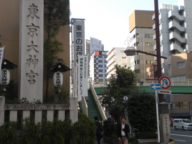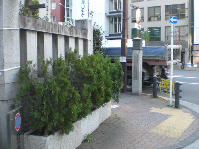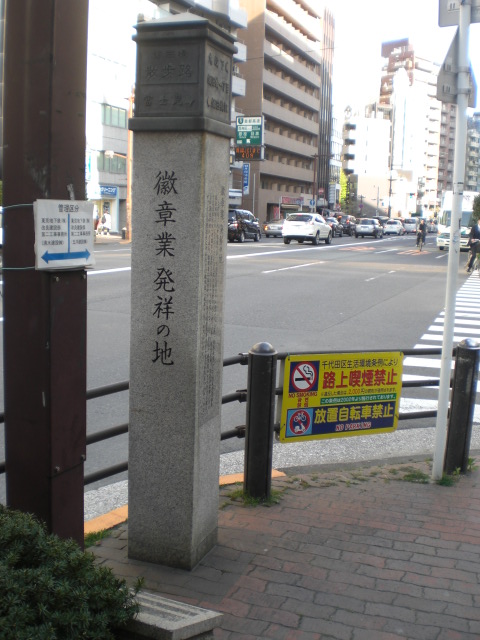 目白通りから東京大神宮の参道が別れる三叉路に、徽章業発祥の地の石碑が立てられています。