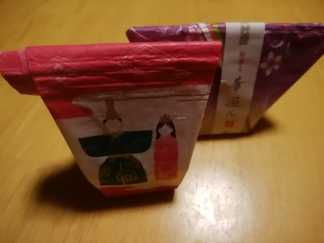川崎の地下街、アゼリアにある和菓子のお店です。店頭に、桃の節句っぽいパッケージの和菓子があったので、買ってみました。