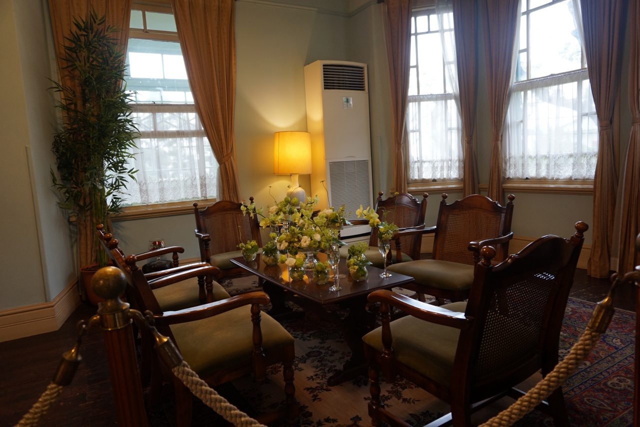 同じように開放感のある作りだった熊本市のジェームズ邸は、熊本地震で全壊しましたが、こちらは阪神大震災を耐え抜いています。それでも無傷とはいかず、庭には倒壊したレンガ煙突が残されていました。震災後、見学者を受け入れられるようになるまでには数年の歳月を要したそうです。