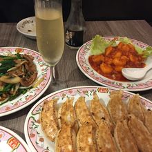 以前 オイスターレストランがあった場所に餃子の王将がオープンしていました。休日の夜だったので、入店待ちの方々沢山いました。店内は少しだけ薄暗く 普通の王妃より少しだけ 女子が入りやすい雰囲気でした。スタッフの方はオープン直後でしたが、頑張ってる感じで好感が持てました。