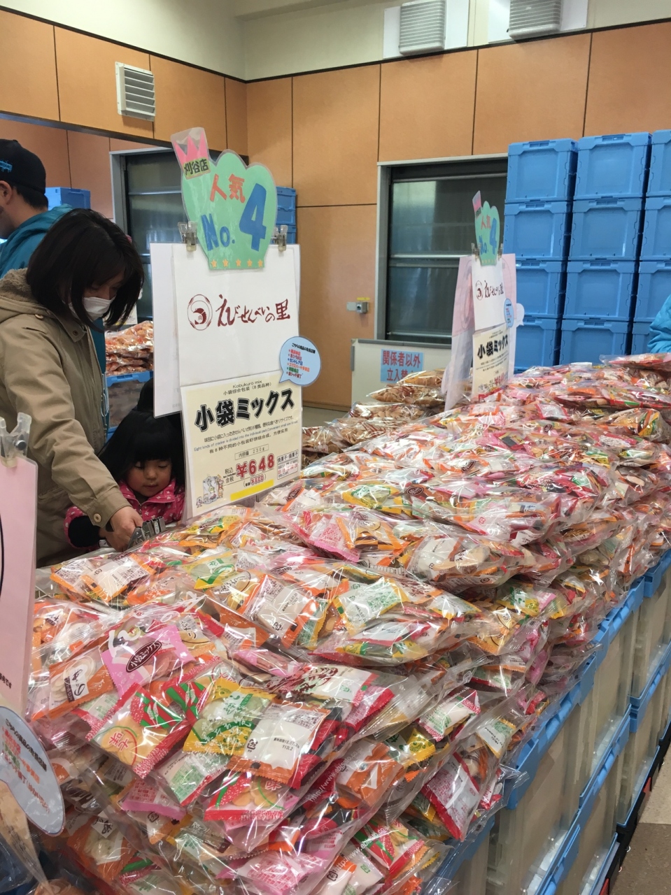 はじめて訪れたときには衝撃でした。えびせんだけでこんなに種類があり、しかもほとんど試食もできる。えびせん好きならたまりません。美味しくて値段も手頃だと思います。日曜だったのでかなりの客で賑わい、混雑していました。