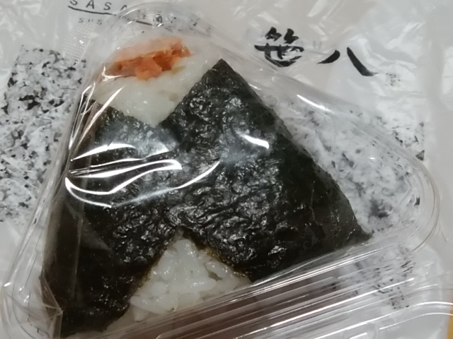 東京駅のグランスタにある、柿の葉寿司や手まり寿司を売るお店の一角に、おむすびが並んでいました。そして、案外をお安いお値段で…。ためしに1つ買ってみました。