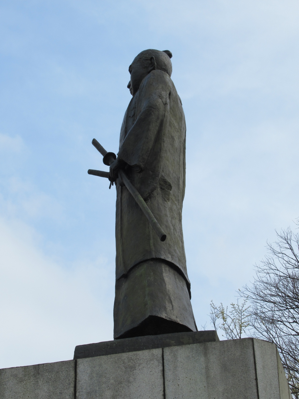 橋本左内の大きな銅像が公園の真ん中に聳えています。