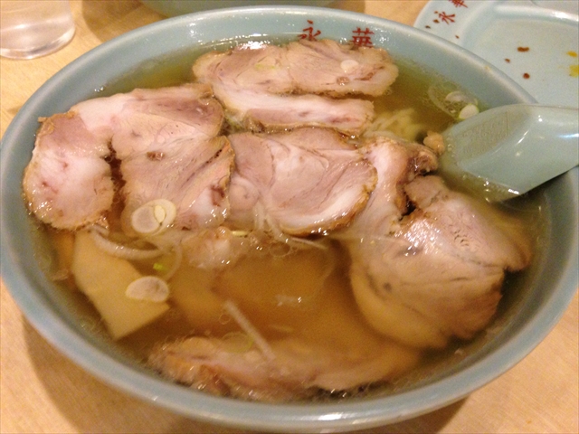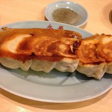 喉ごしがなめらかな青竹打ちの麺は、旨味たっぷりの澄んだスープとの相性が抜群で、佐野ラーメン王道を行く味です。チャーシューメンは、柔らかくジューシーで味付けのしっかりしている大きなチャーシューが麺を覆い尽くいる様子が圧巻です。永華では青竹打ち佐野ラーメンと並んで、サイドメニューの餃子、炒飯、もつ煮も大人気のようです。パリパリ・モチモチの皮に包まれた大きな餃子は、野菜たっぷりの餡がぎっしり詰まってボリューム満点です。注文は3個・5個・ミニサイズから選べますが、その餃子一個の大きさを見れば3個でも納得できる一皿かと思います。
