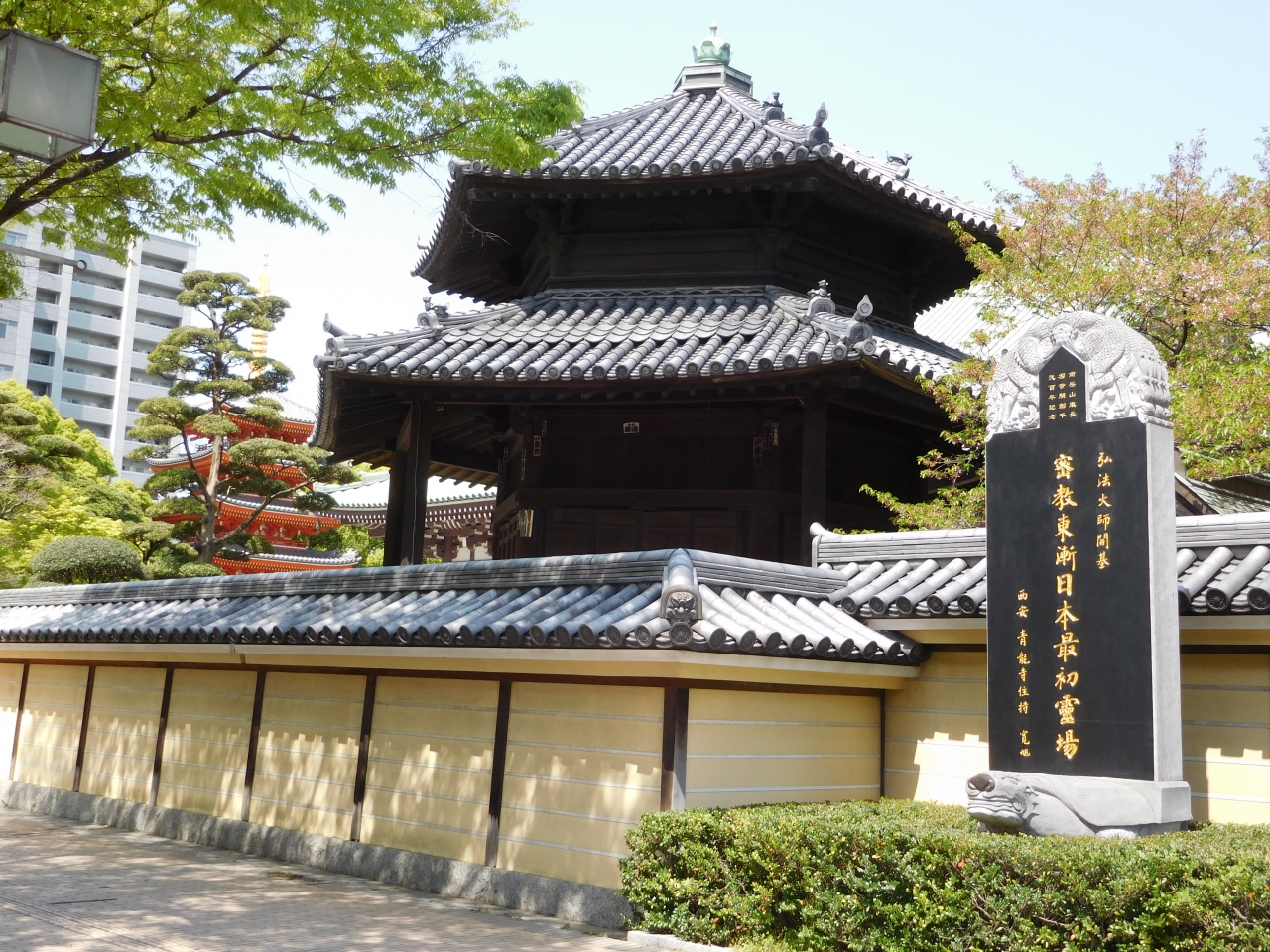 地下鉄「祇園駅」の出口を出るとすぐ目の前にあるお寺です。弘法大師(空海)が創建したお寺としては日本最古と言われています。本堂の他にも、六角堂、福岡大仏、五重塔もあり、とても落ち着いた厳かな雰囲気でした。お参りして帰ろうとした所、海外からの観光客が団体で来ていて、とても騒がしい雰囲気になってしまったのがちょっと残念でした。