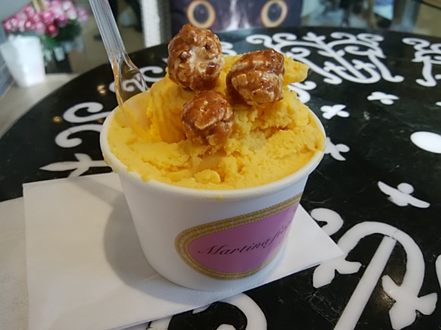 ほくほくかぼちゃをチョイス。486円(税込)です。ジェラートの上にポップコーンがトッピングされています。名前の通りに、かぼちゃのほっくり感をしっかり感じます。かぼちゃの味わいも濃くて美味しい。