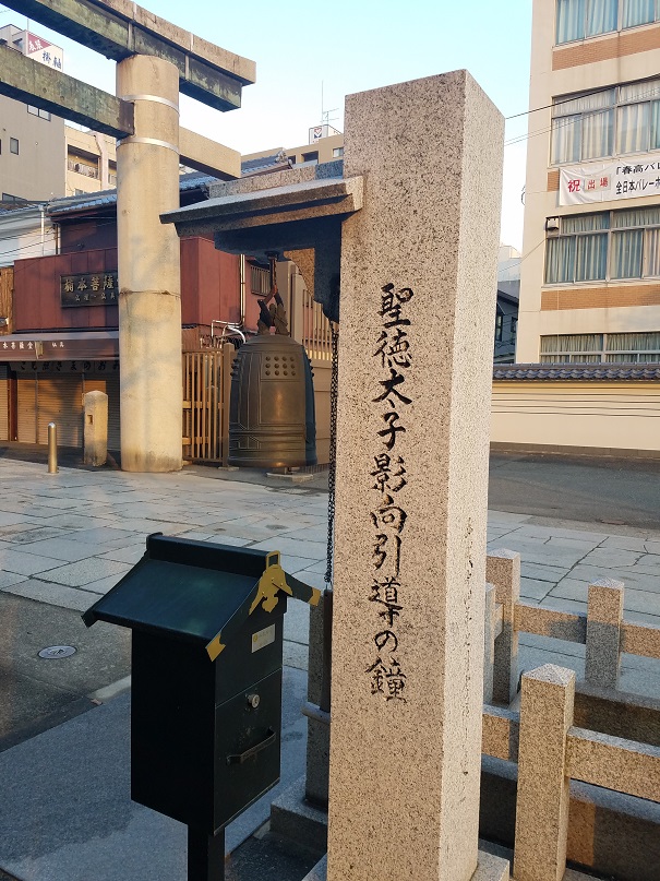 四天王寺に納骨する時に、傍らにある引導石を拝んでこの鐘を三回鳴らすと聖徳太子が現れて浄土に導いてくださるということだそうです。