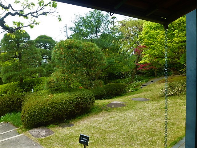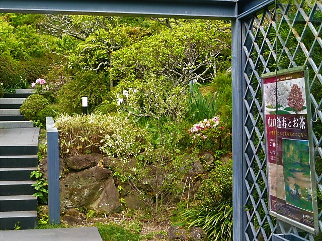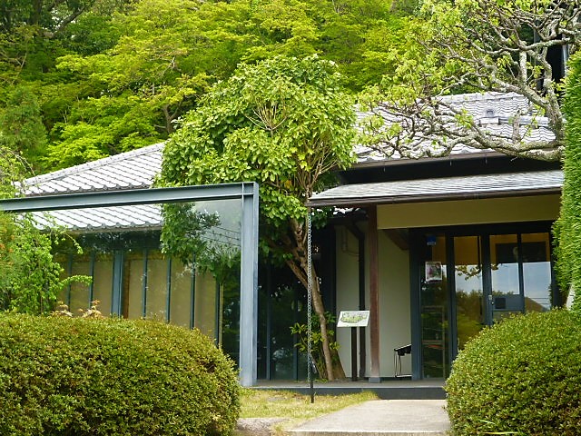 `口ばしを上に向けた鶴`が蓬春画伯の絵画は知っていましたが(本物の鶴を撮った時に真似をした記憶がありました)、記念館が葉山! 新緑の樹木や花(つつじ/白い菖蒲!/バラ)の咲いているお庭を見ながら、少し曲がった石段を通りと本館です。画伯の得意な`花鳥`(花と鳥?)が見えてきます…紫陽花の絵を`じぃ~`と見ていたら抽象の世界に(^^) 恰も友人の葉山家(玄関/和室/室内から観える新緑の庭)を訪問する様な気がしました。アクセスは`県立近代美術館`の道(県道207)を挟んて山側(車は美術館の駐車場に;有料)。