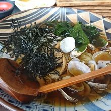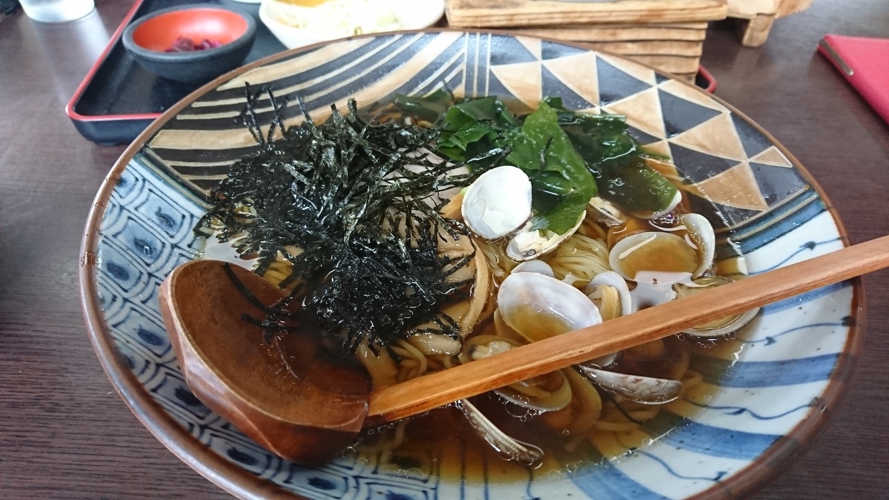 美味しそうな海鮮を食べている方がいっぱいいましたが、磯ラーメンを頼んでみました、こちらは醤油味のラーメンに殻付きのあさりが入ったタイプで子供はこちらの方が好みのようでしたが私は塩味でいくつかの海鮮が入っている志のざきさんが磯ラーメンは好みでした。