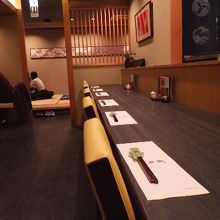 店内外共に和風で、カウンター席、テーブル席、小上がり席がある。