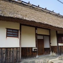 この門は、篠山藩第12代藩主、青山忠裕が、その老女小林千衛の多年の労に報いるために修築したという長屋門。藁ぶき屋根が長く続いていて、ここだけでも十分暮らせそうな建物です。