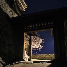 ライトアップの時には戸無門がまるで額縁の様に背後の桜を引き立てていて綺麗でした。