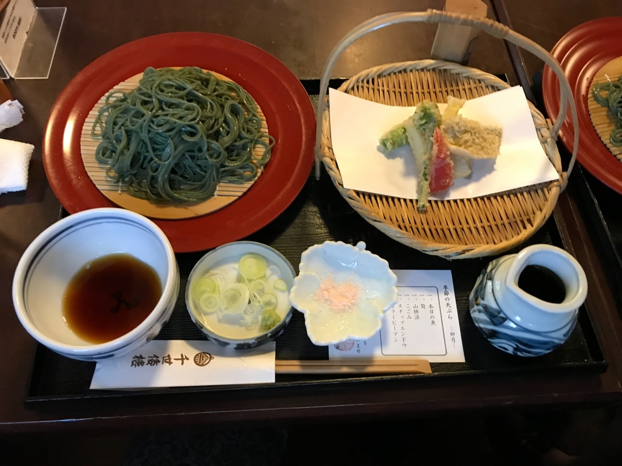 千世倭樓というお食事処の中の美蔵という蕎麦処で、季節のおすすめメニュー「蓬切りと季節の天ぷら(5月初旬まで)1,600円(税別)(1日15食)」を戴きました。