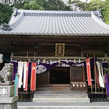 お祭りの日であったので拝殿前には幟が建てられ、提灯も立てられて今にも戦に行くような雰囲気がただよう感じでよかったです。