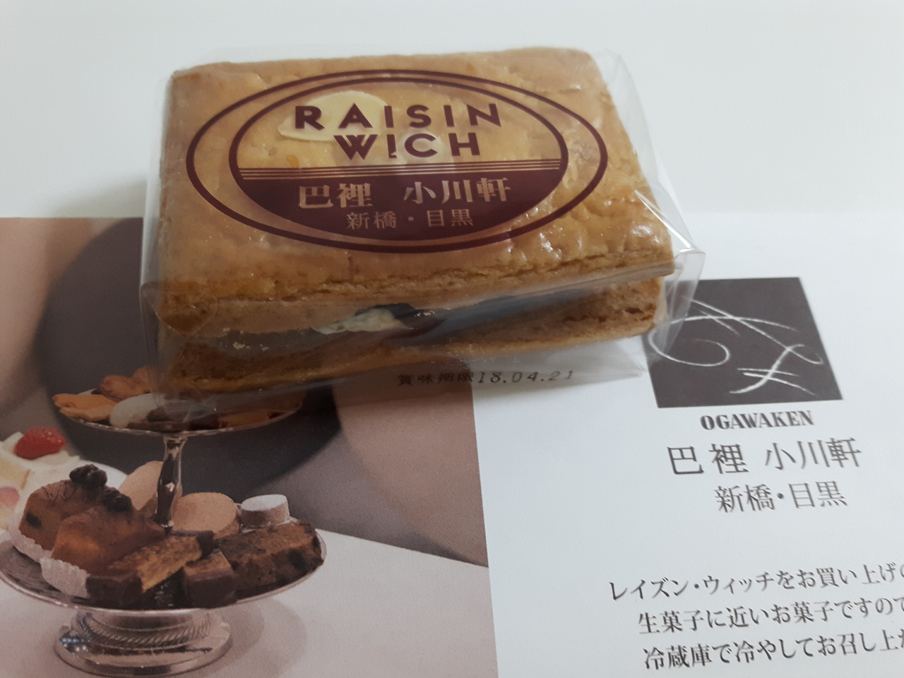 新橋駅前の小川軒といえば、レーズンウィッチで有名です。ラム酒の効いたレーズンにクリームがしっとりとマッチして、クッキーはさくさく。他のお店のレーズンウィッチとはひと味違います。昔は予約が必要でしたが、今日はラッキーに予約無しで買うことができました。今時10個入り1080円で買えるとは驚きです。