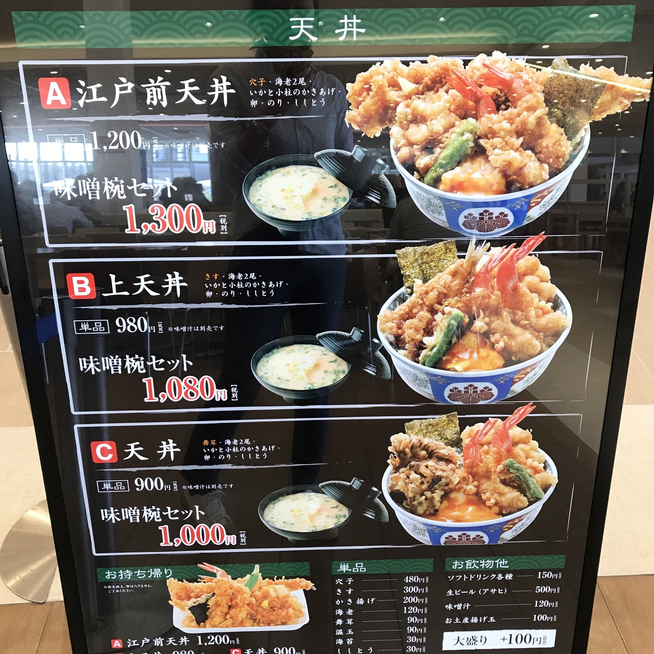 外のショップにごま油の匂いがしたので 遠くからでも天丼が食べたくなります。日本橋店はとても混んでいるので こちらは便利です。他のお店でも千円は行くので こちらはコスパが良いと思います。トッピングで色々出せるのとテイクアウトも出来るのでオススメです。