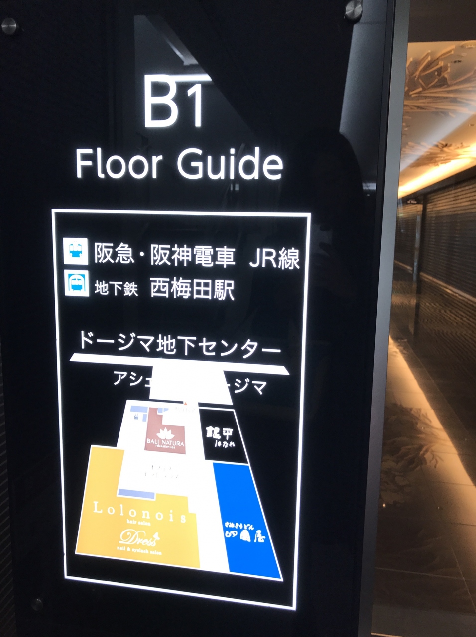 まさに堂島の地下街にあるフロアです。飲食店が数店並んでいますが知らないお店ばかりです。でも気になったのでちょっとのぞいてみたり。西梅田駅から地下街を通ってたどりつきました。夜は仕事帰りの人が集まっていました。