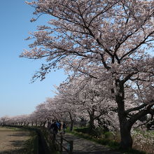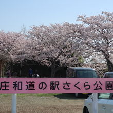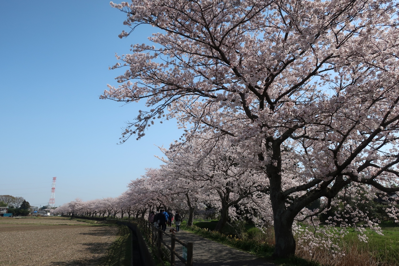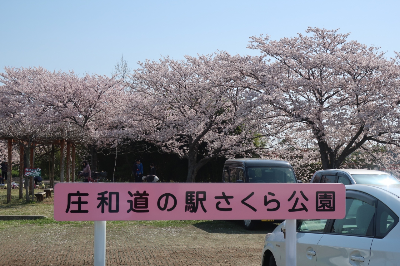 また、道の駅の裏側を出た東側には川沿いに庄和道の駅さくら公園があり、川沿いに植えられた桜並木の桜が満開でとても綺麗でした。