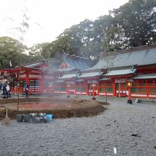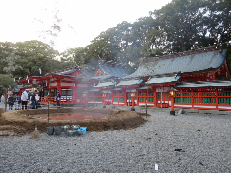 熊野三山の一つで全国の熊野神社の総本山ですが、思ったよりこじんまりしていました。でも由緒ある境内には佐藤春夫の句碑やオガタマノキや御神木の梛など、見所はそれなりにありました。本殿の前ではどんど焼きが行われていて、大きな穴の中に参拝客が次々と正月飾りやしめ縄を投入れていました。
