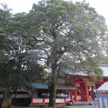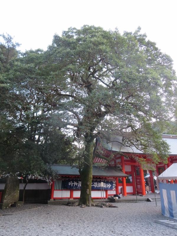 熊野速玉大社の奥、本殿近くに立派な大木がありました。オガタマノキは関東以西に見られるモクレン科で御神木として神社に植えられることが多いようです。天然記念物になっているこの木は緑のコケに覆われていて、冬でも葉が茂っているので、威厳を感じました。