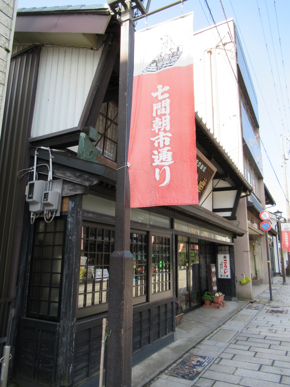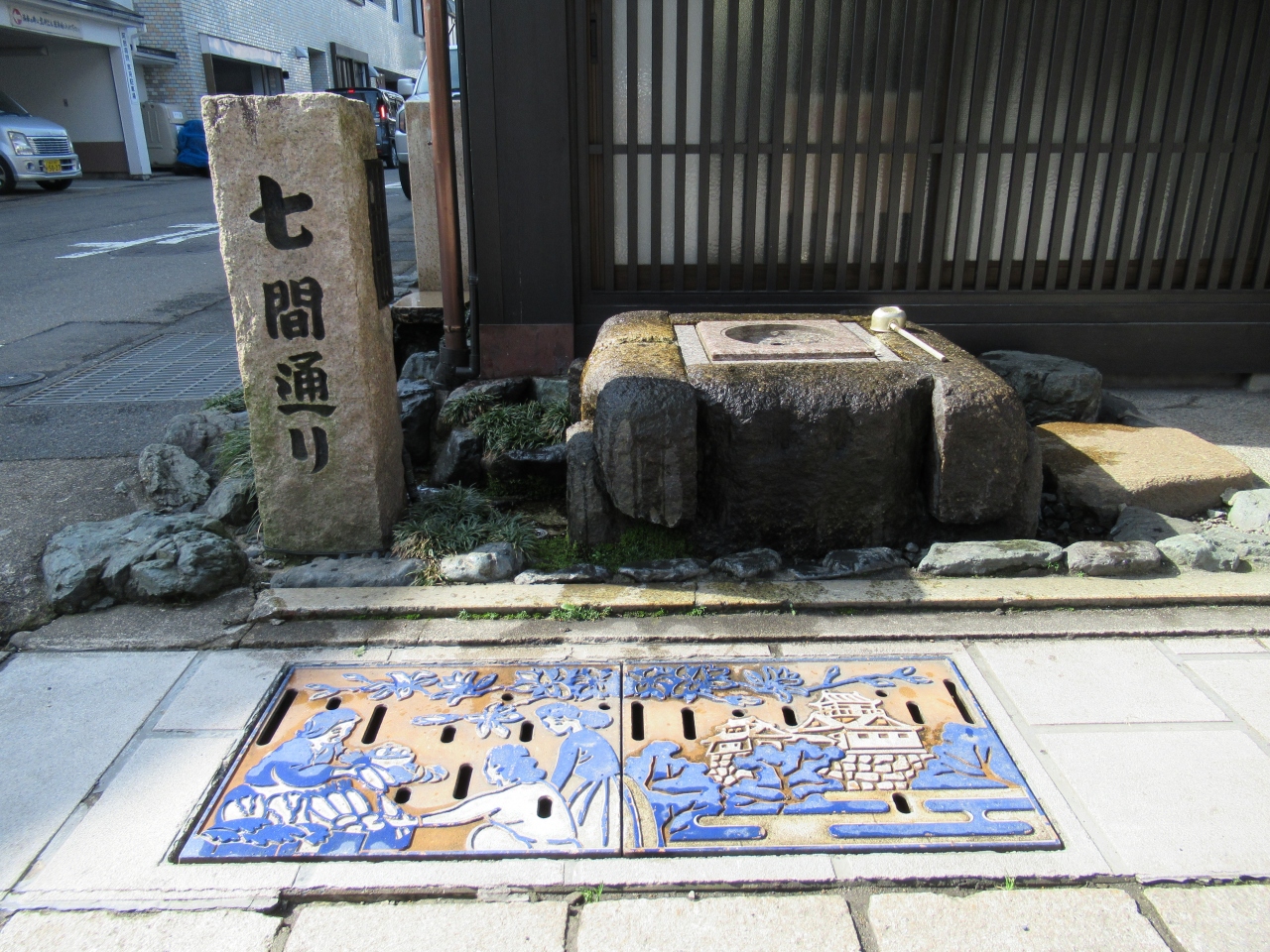 東西に延びる七間通りはアスファルトではなく石畳になっています。