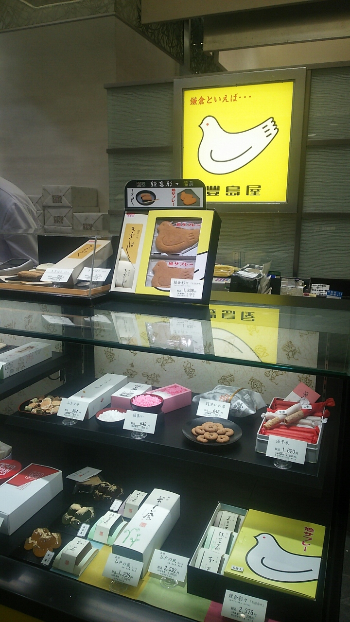 鎌倉、鳩サブレで有名な豊島屋さんです。黄色の缶に大きな鳩の絵が描かれています。