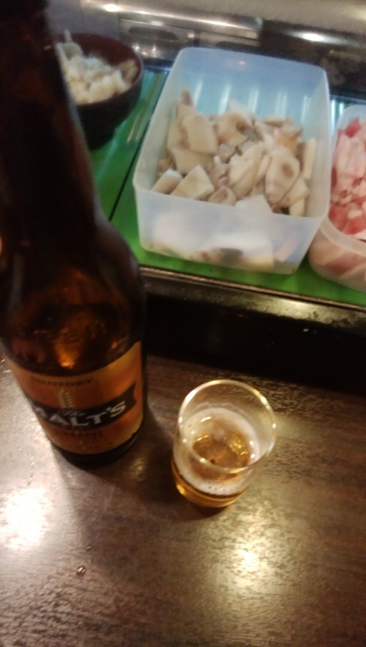 京橋の立ち飲み屋さんです。こちらは鉄板焼きや揚げ物、おでんなど種類豊富なお店で、大瓶ビールは市販価格くらいで飲めます。瓶ビールと料理数品で十分楽しめるし、1000円あれば十分のハイコストパフォーマンスなお店です。