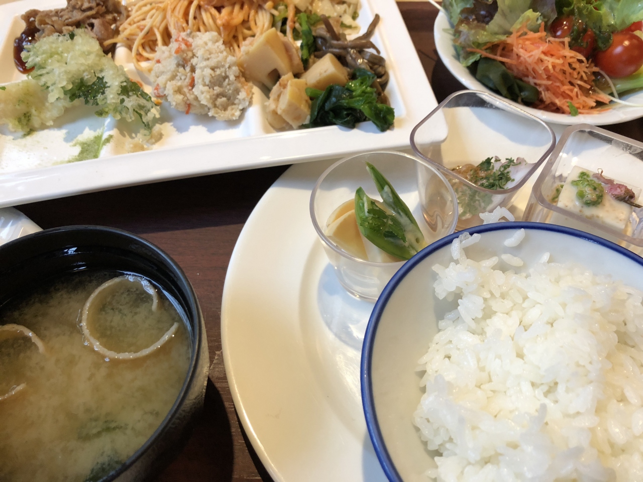 岡崎神社の森に埋まるようにしてある小さなホテル平安の森の1階にあるレストランはロビーのような位置に大きなガラス窓とゆったりとしたテーブルが配され、ゆっくりと食事ができる。昼のバイキングは宿泊客でなくとも利用でき、京のおばんざいを中心にピザやグラタンなどの洋食もあり、外国人旅行者の姿も多い。天ぷらやどんぶり、牛肉の焼きしゃぶなどはその場で作った熱々をいただける。孫の入学式の後に利用したが、ここでは子供もおとなしくなる上品な雰囲気である。