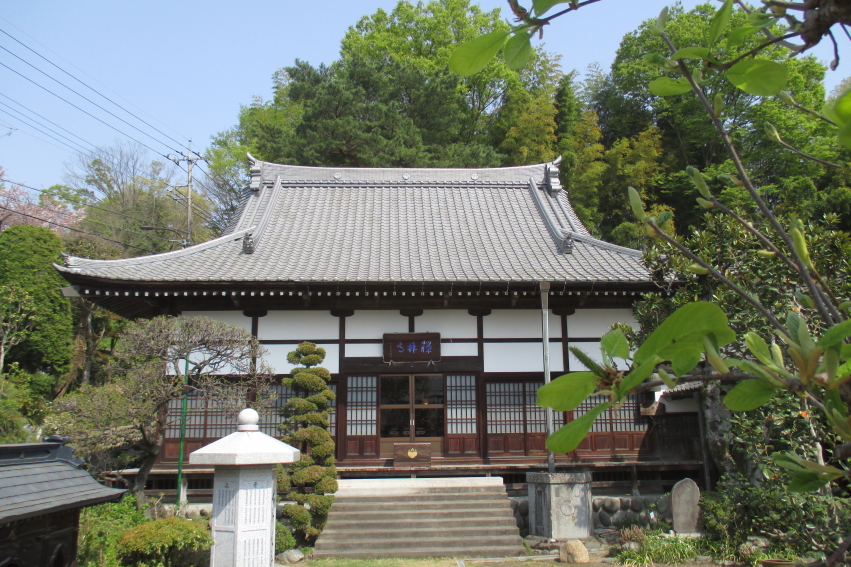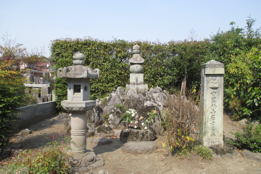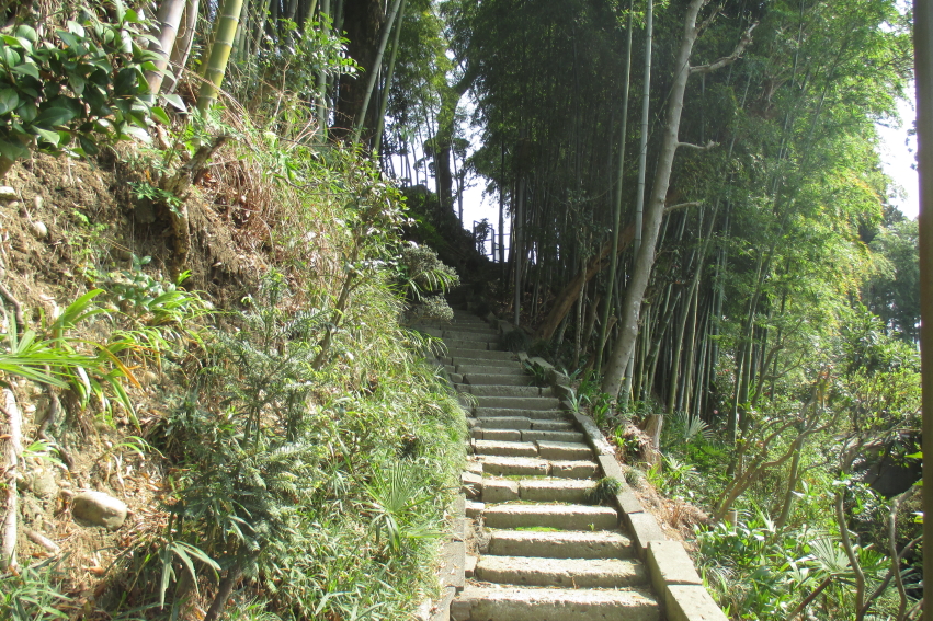 禅林寺は文豪・中里介山さんのお墓があることでも有名です。本堂の左側を回り込むと煩悩坂と名付けられた階段があります。禅林寺の墓地はこの階段を登った高い場所にあります。なお、駅の方から来た時は、階段もなく、そのままお墓に通じる脇道があります。墓地の敷地に沿って、親切にいくつも案内の矢印が付けられていますが、肝心の最後のところには何も案内がないので間誤付きます。お墓は大菩薩峠から運んだという自然石に覆われています。