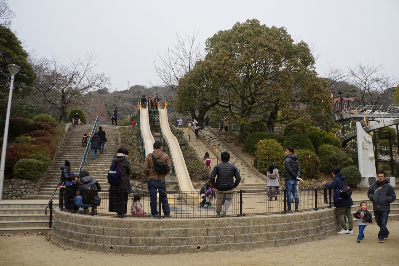 五月山公園は、池田市街の北側。丘陵地を利用した大きな公園です。この日も市内の家族連れが大勢やってきていて、活気あふれる光景。地形を利用した長い滑り台とか野外の遊具が充実しているのも人気の理由の一つだと思います。