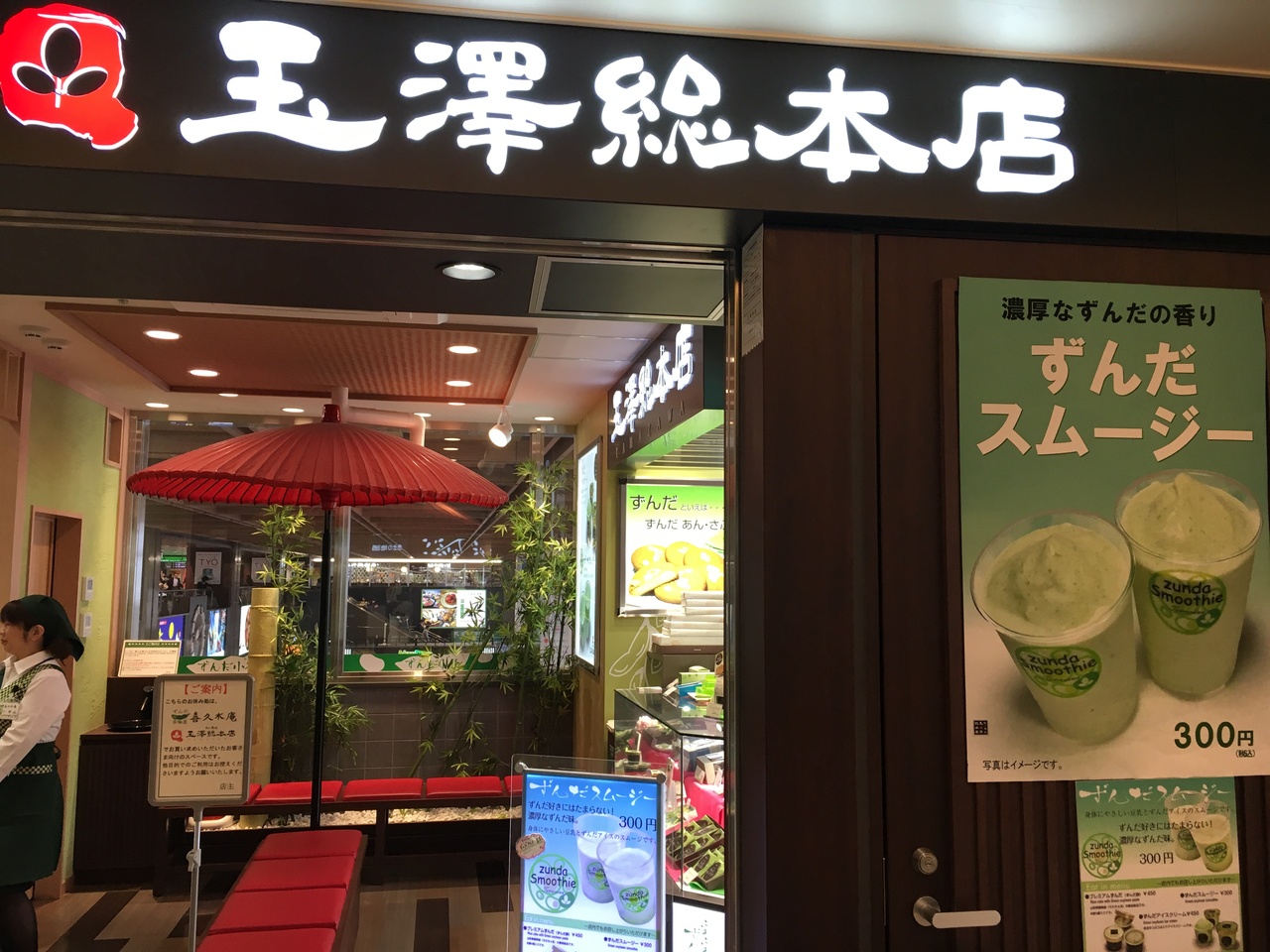 新幹線の待ち時間に鮨通りで鮨をつまんだ後、近くのお店でずんだシェイクを買いました。ホームまでお持ちかえりできるので便利です。最高級の枝豆と言われる山形県鶴岡産の「だだちゃ豆」を使っているとのことで、甘くてとてもおいしかったです。