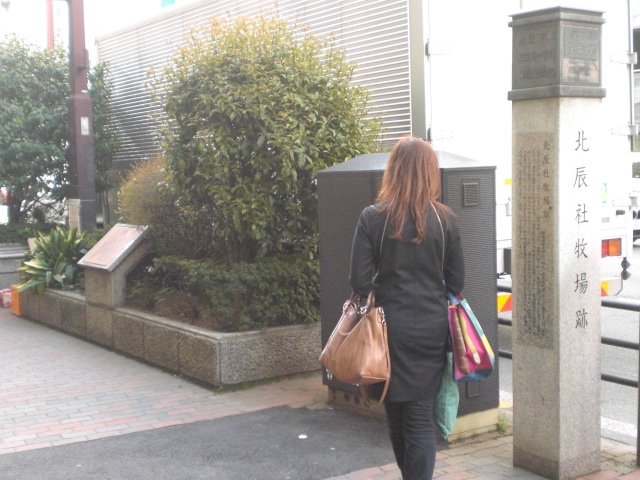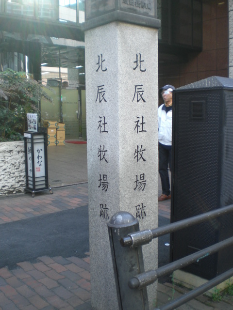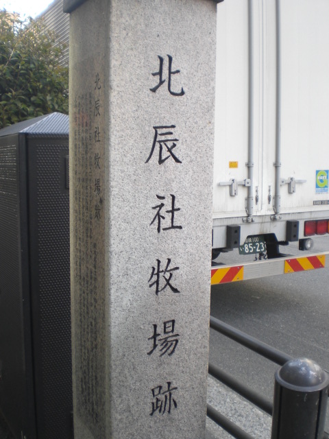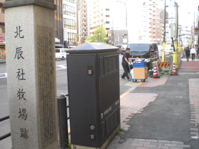 北辰社牧場跡碑が、目白通りの西側の歩道に立てられています。