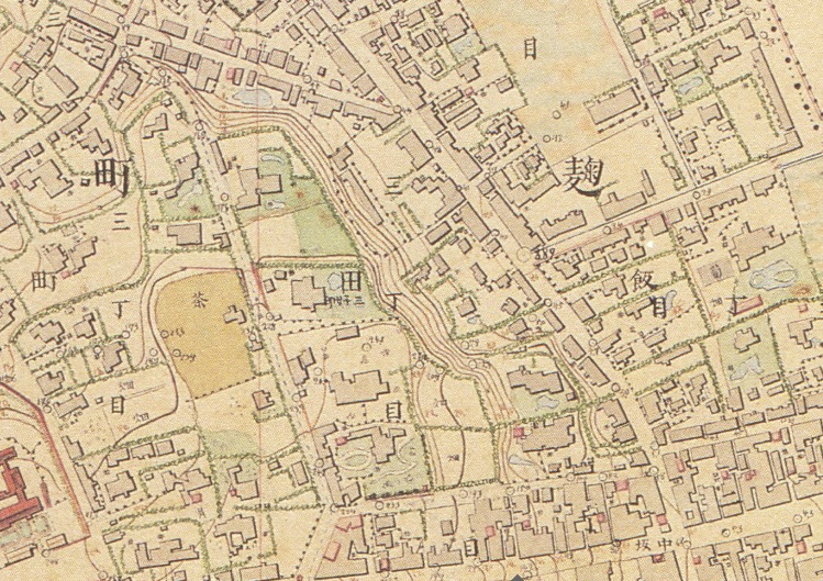 明治初期の地図を見ると、茶畑や草地が諸処に見られ、一国の首都らしからぬ田園的な状況です。