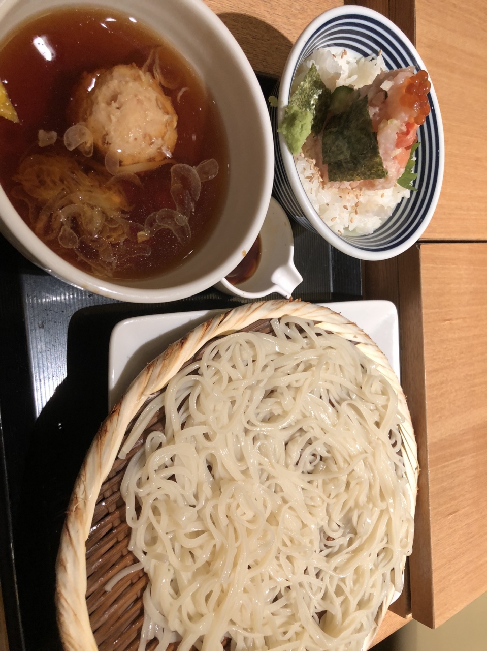 日本橋を代表する天丼の金子半之助のうどんと天ぷらめしの店がコレド室町2にありました。稲庭うどんとセットで天ぷらめしか【つじ半】の贅沢めしの付けられます!どちらもとても美味しく、行列なしで着席できます!トッピングも色々な種類がありうどんも自分好みで食せます。