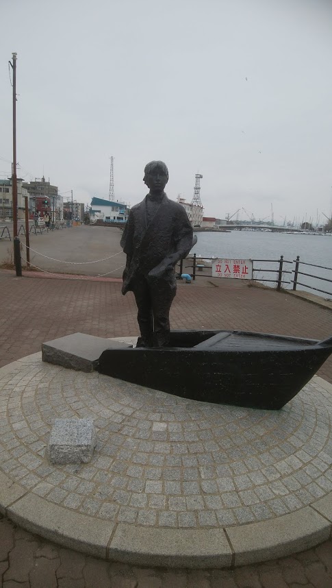 新島襄といえば同志社大学をつくった人物で著名人でで知っていましたが。、なぜ函館と関係するか函館に来るまで全く知りませんでした。元治元年に海外への見聞を広めたいとの情熱から、函館港から小舟で沖に停泊のアメリカ船にたどり着き密出国した場所がここだったようです。このブロンズ像はその時の様子を再現したものですが、何とも言えない頼りにならない小さな船だと思います。しかし人物の姿は希望に満ち溢れた姿であって、目に見えないパワーを感じます。