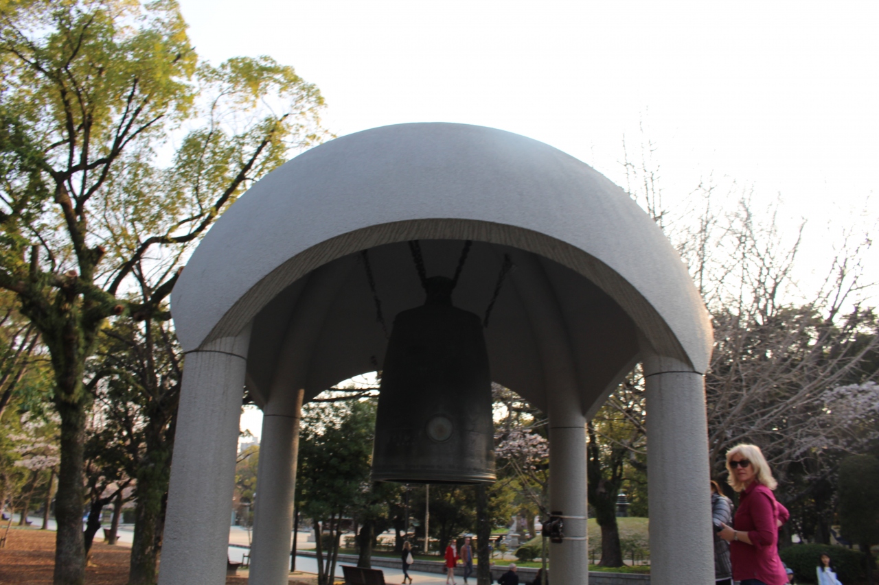 広島の原爆被爆地に作られた平和記念公園のなかにあるモニュメントです。人間国宝の有名な方が設計され、製作されました。ドーム型の屋根形状に4本の柱で建てられ、中央に鐘があります。誰でも鐘を打つことができ、かなり響きわたります。平和を祈願して、鐘を鳴らしました