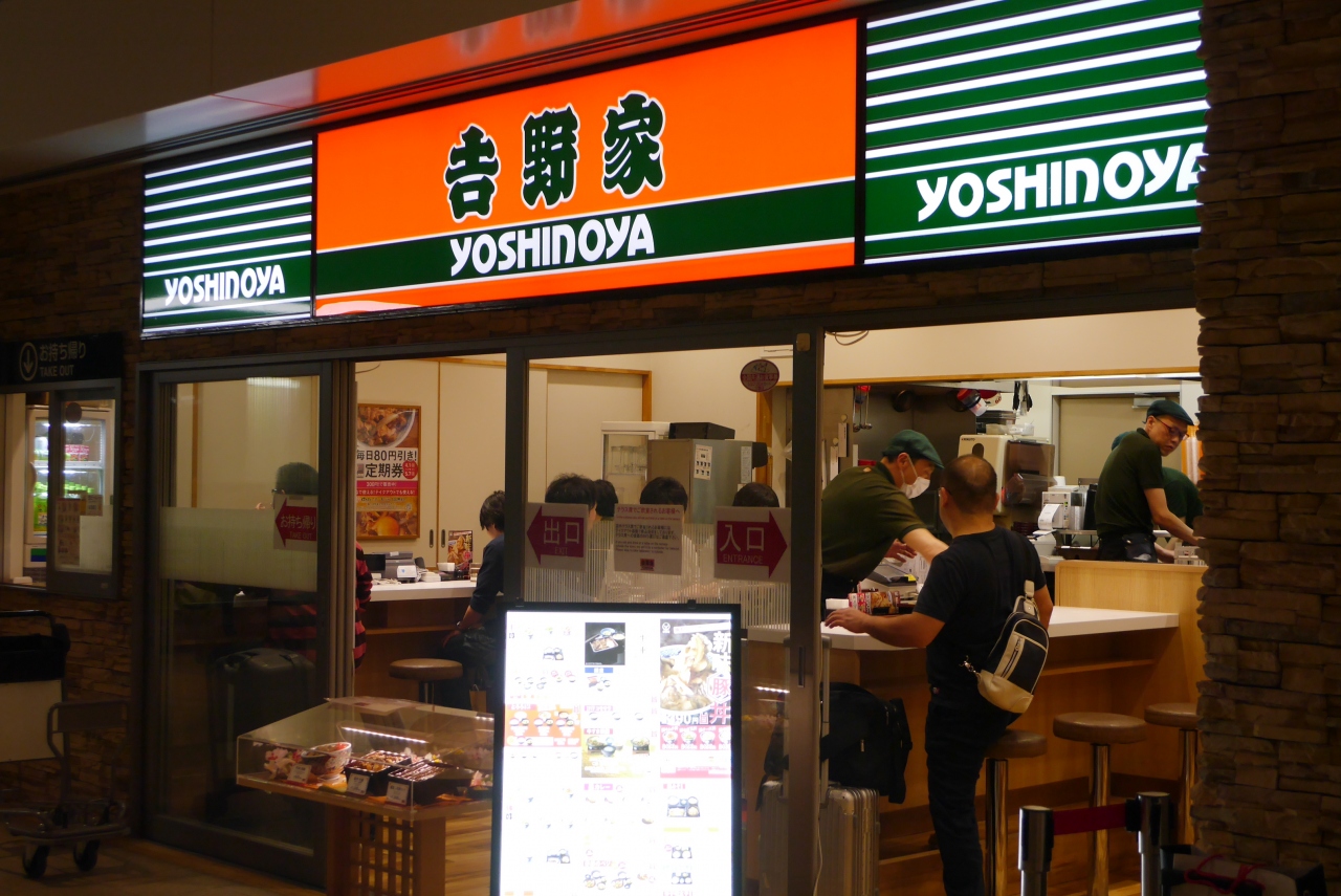 羽田空港国際線ターミナル内にある吉野家です。羽田日本橋近くにあり夜11時頃、江戸小路の店が閉まっても開いている店です。