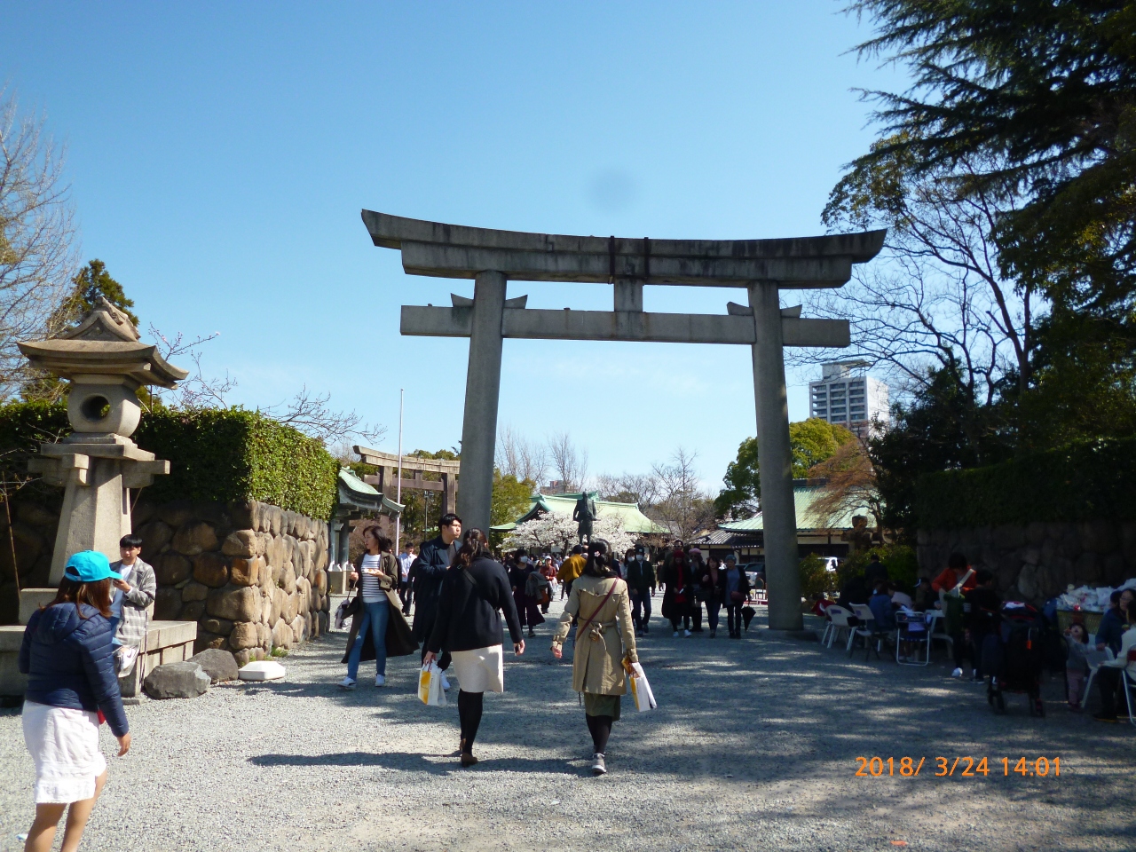 大阪城で南側から登城する際のルートになっていた。団体バスの駐車場が近いのか団体ツアーの観光客でごった返していた。大手門を出て目の前には豊國神社もあるので大勢の方で賑わっていました。入ってすぐの大きな石垣の石が見事です。